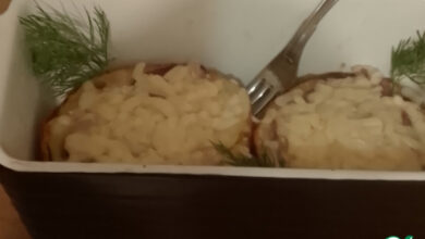 Запекайте в предварительно разогретой до 180 градусов духовке около 30–40 минут до готовности риса и образования аппетитной корочки сверху.
