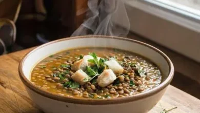 Классический зимний салат с варёной докторской колбасой, картофелем, морковью, солёными огурцами, зелёным горошком, яйцами и майонезом.