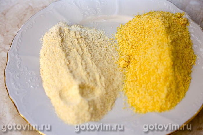 Теперь займемся кукурузной мукой. В оригинальном рецепте эларджи готовят из кукурузной муки 2-х разных степеней помола. Если у вас есть возможность достать правильную муку, то вперед к идеалу. У меня есть крупа для поленты, которую я и измельчила в кофемолке. Результат на фото.