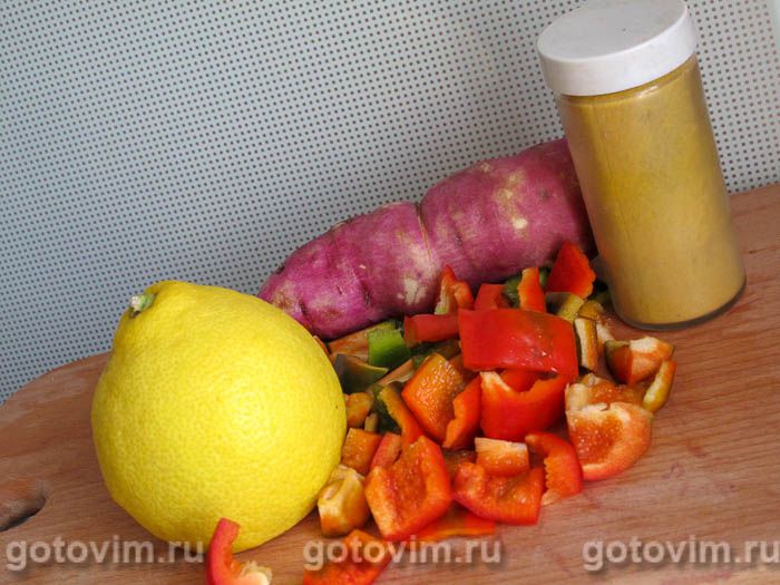Батат, тушеный с перцем, лимоном и карри. Рецепт с фото