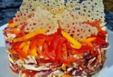 Таким же образом нарежьте и морковь. Так как эти овощи имеют более плотную текстуру, то их нужно выкладывать первыми.