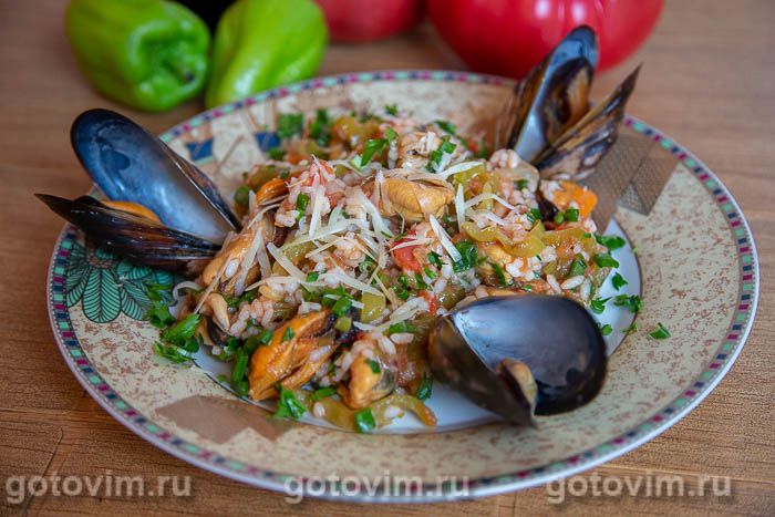 Черноморские мидии с рисом и овощами. Рецепт с фото