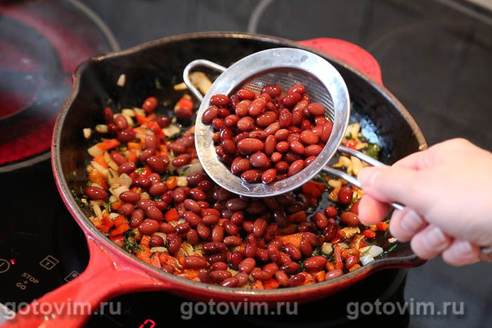 Для рагу подойдет консервированная фасоль в собственном соку и оставшийся от обеда вареный рис. Или заранее сварите по отдельности рис и фасоль, а дальше действуйте по рецепту.