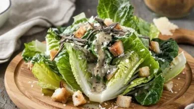 Рецепт Цезарь с куриной грудкой, листьями салата ромэн, пармезаном, сухарями, анчоусами, оливковым маслом, яйцом, горчицей, лимоном, чеснок, соль, перец. Содержание1…