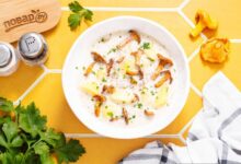Разрежьте луковицу пополам и нарежьте мелким кубиком, добавьте в емкость к остальным ингредиентом. Сначала нужно поджарить и потушить продукты с более плотной текстурой, а потом добавлять грибы. Обжаривайте капусту примерно 8-10 минут на среднем нагреве, время от времени перемешивая.