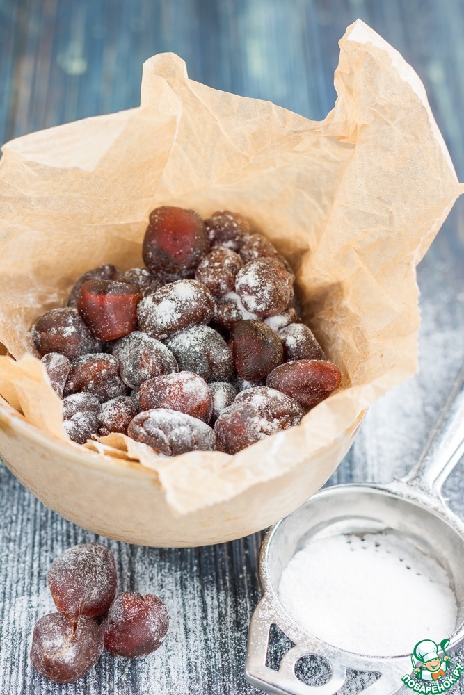 Приготовьте сахарную пудру и бумагу для выпечки, на ней мы будем формировать наши полезные конфетки.