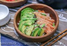 3. Стейк лосося нарезать, положить в суп, варить еще в течение семи минут. В конце добавить измельченную зелень, молотый перец, варить сырный суп три минуты.