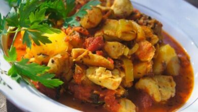 Предлагается старое блюдо английской кухни, которое было популярно в 70-е годы прошлого века и представляло собой сочетание тунца и фасоли с различными добавками. Подавалось блюдо в двух видах : как салат, со множеством овощей, количество и состав которых варьировались — я их перечисляю как опциональные, а также в более холодные дни как закуска внутри печеного картофеля, давая возможность тунцу расплавиться.
