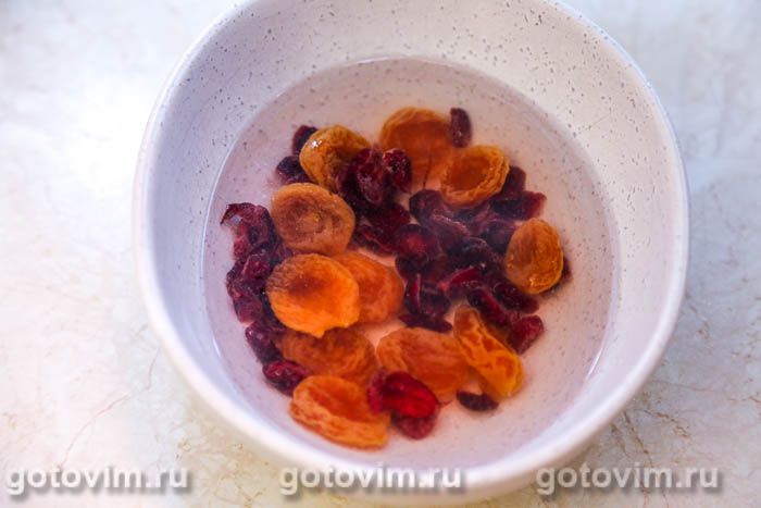 Сухофрукты (у меня курага и клюква, но можно добавить что-то на свой вкус) промыть.