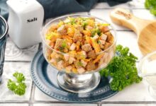 Сливочный вкус и нежность салат получает за счет сыра и яиц. Эти компоненты также делают блюдо более питательным, что важно для закусочного салата.