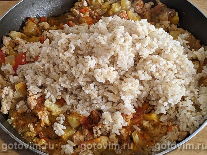 Овощная запеканка с рисом и куриной грудкой. Рецепт с фото