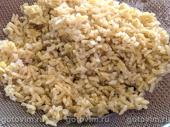 Рис отвариваем до готовности и откидываем на дуршлаг.