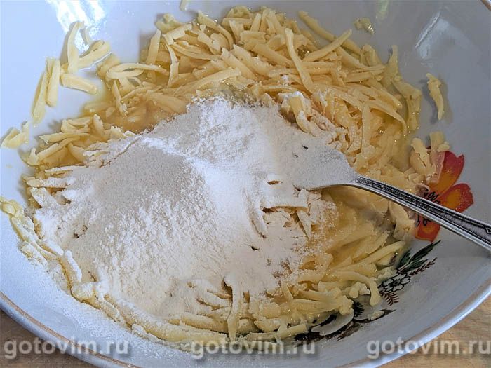 Взбиваем венчиком яйцо с молоком, мукой и тёртым сыром. Добавляем зелёный лук и укроп.