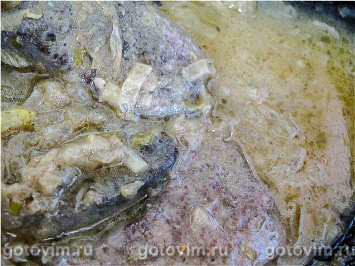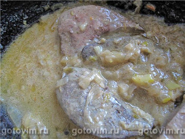 Я готовлю горчицу самостоятельно из порошка, как указано на упаковке (только уксус разбавляю с лимонным соком). Из горчицы домашнего приготовления соус выходит намного вкуснее. 1-2 ст.л. острой горчицы развести водой, вылить в сковороду с жареной печенью, так чтобы всё было покрыто жидкостью. Томить ещё минут 10.