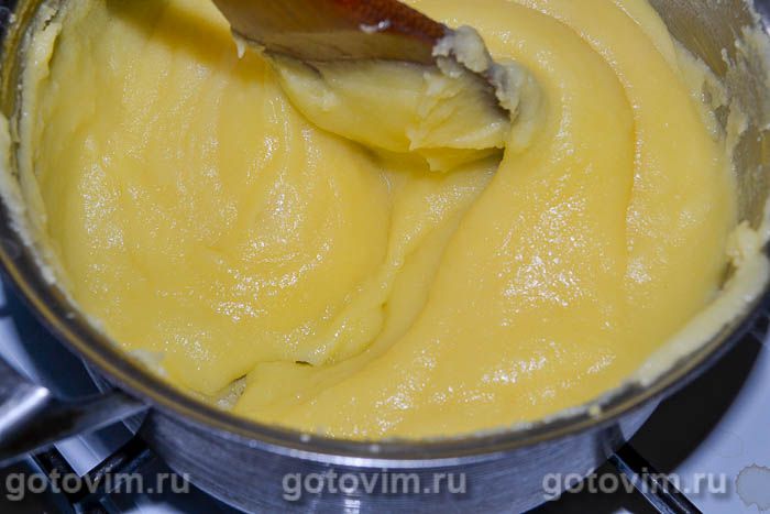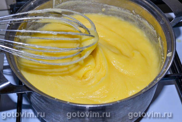 Когда каша начнет густеть, и ее будет неудобно размешивать венчиком, возьмите деревянную лопатку с ровным краем. Варите поленту, не переставая ее энергично размешивать и соскабливать со дна кастрюли, чтобы каша не пригорела.