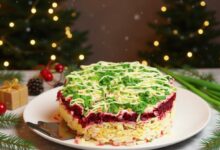 Для украшения блюда можно использовать сыр, зелень и другие яркие овощи. Порционный блинный торт получился очень вкусным и сытным. Приятного аппетита!