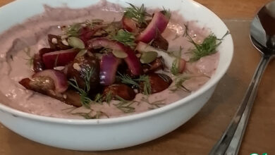 Отпюрируйте ее погружным блендером в течение 3-4 минут, получая однородную консистенцию. Если не добавляли сладкие специи и приправы, то можно это сделать на данном этапе. Можно даже вмешать немного варенья, сиропа или топпинга.