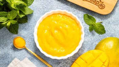 - Перелить массу в другую емкость, всыпать манку, перемешать, оставить смесь на 40 минут для набухания крупы.