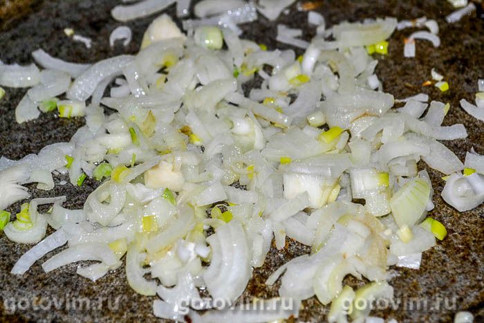 Очищенную луковицу не очень крупно нарежьте и припустите в растительном масле.
