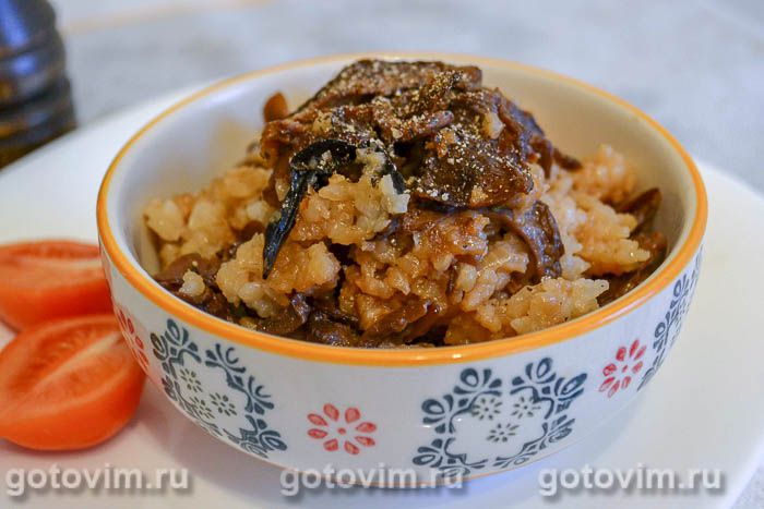 Рисовая каша с сушеными грибами. Рецепт с фото
