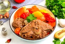 - Порезать кусками рыбу, посолить, взбрызнуть соком лимона, дать постоять около 10 минут, а затем поджарить на сковороде. Отдельно от рыбы поджарить грибы и лук, приправив солью и перцем. Картофель отварить в мундире, в подсоленной воде. Помидоры опустить в кипяток и снять кожицу, порезать его дольками.