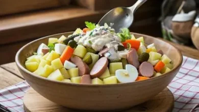 Приготовить салатную заправку, смешав в миске вилкой растительное масло по своему вкусу с бальзамическим уксусом и пропущенным через пресс зубчик чеснока.