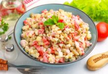 Выложить все содержимое в глубокую миску, добавить красный перец, кориандр, уксус, кипяток, соевый соус, досолить по вкусу и выдавить через пресс заранее приготовленный чеснок.