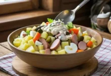 Вернуть в кастрюлю с бульоном утиное мясо, добавить овощи и варить суп еще минут 12. Для клёцек из яиц, щепотки соли, пары ложек молока (или воды) и муки замесить некрутое тесто.