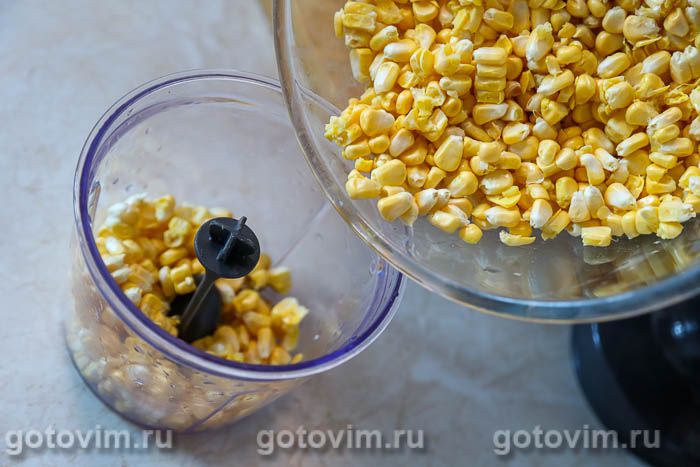 Сырые зерна кукурузы пересыпать в блендер и пробить в кашу.