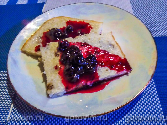 Через 40 минут всё готово, можно доставать запеканку. Горячую запеканку делим порционно, поливаем вкусным вареньем. Чашка чая или стакан молока лишними не будут. Посмотрите, как наперебой станут дети просить добавку!